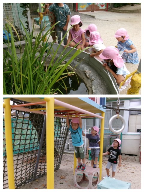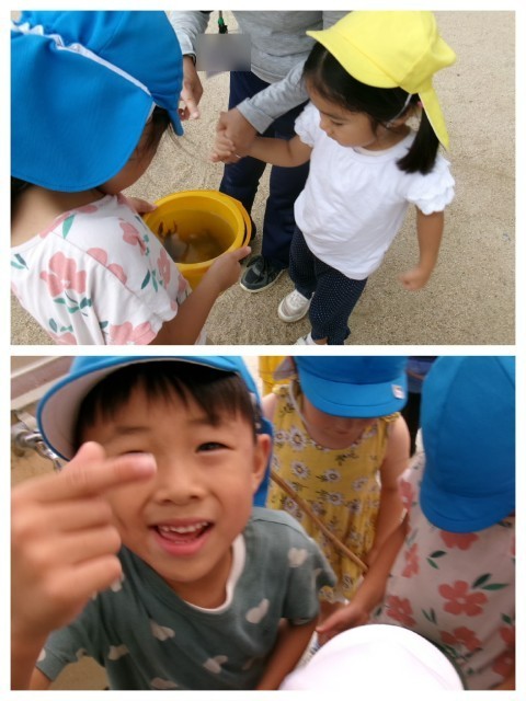 ザリガニ池では「絶対に釣る!!」と集中して釣りをする年長さんに「がんばれ~(*^▽^*)!」と応援する年中さん🎵