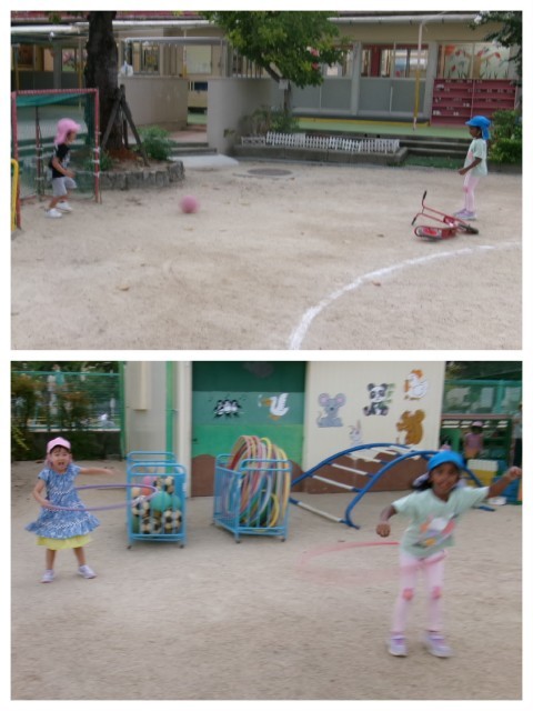 他にも,フープを2本で回したり,PK合戦をしたりお友達と一緒に遊びを楽しんでいましたよ(*^-^*)