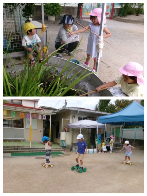 園庭遊びでは,リレーをしたり,ザリガニ釣りを楽しんだりしていましたよ🎵
