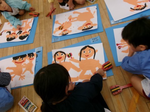 絵の具やパスを使って描くことを楽しんだ子どもたち。運動会への意欲もますます高まっています。