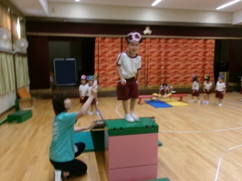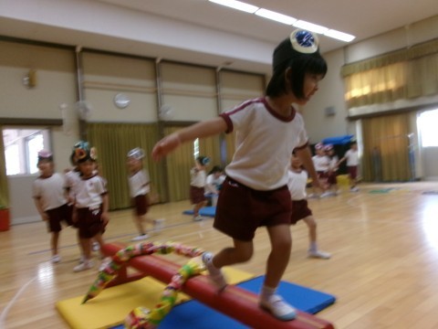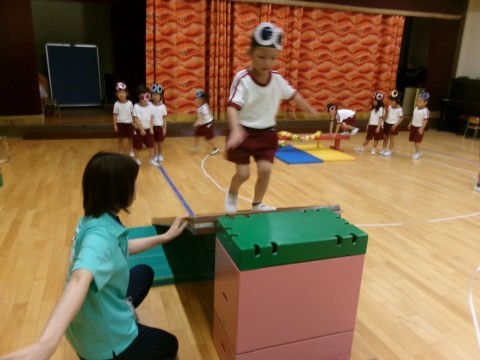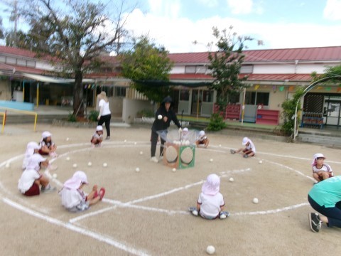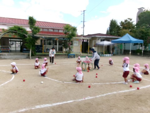 玉入れでは,上手に投げられるようになってきたので,2回戦目は1段あげて挑戦!今日は,赤チームと白チーム1回ずつ勝つことができました!保育室でも投げて遊ぶことを楽しんだりしましたよ♪