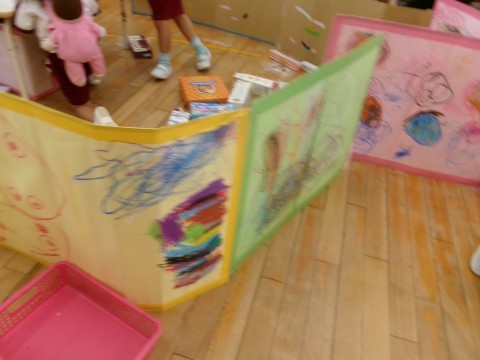 「おつきさま描いたよ」「お団子がたくさんあるよ!」と楽しんで描いていました