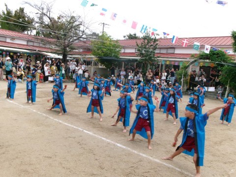 そら組のソーラン節!!鳴子をもって力強く,そして元気いっぱい踊りました!!