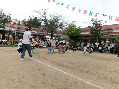 まめっこちゃんが遊びに来てくれました。「かけっこ」で運動会に参加してくれましたよ。