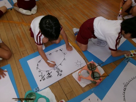 保育室では「運動会」の絵を描きました。それぞれが頑張ったことを思い出して描いていました。