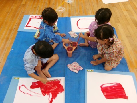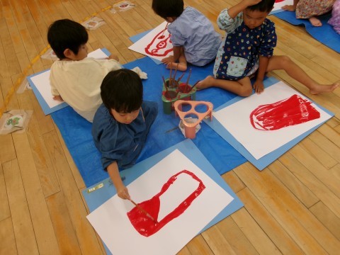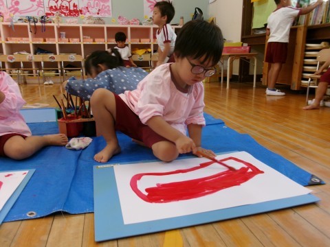 赤でダイナミックに描く子ども,タイヤを大きく描く子どもなど様々ですが,とても印象に残っているようで,のびのびと描いていました