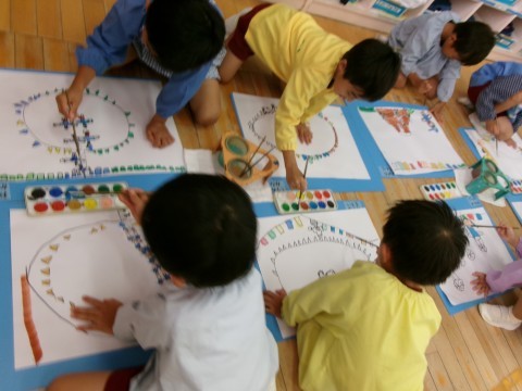 今日は運動会の絵に色を塗りましたよ。