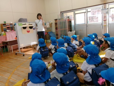 10月10日は目の愛護デーです。「目」について保健指導がありました。眉毛やまつげの役割,目を守るために大切なことなど,子どもたちにわかりやすくお話してもらいました。おうちの人とも,目の健康について話し合ってみてくださいね。