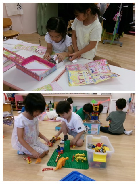 お部屋では,『順番ね💛』『次貸してねっ!』『一緒に遊ぼうよ!』などルールを守ったり,友達を誘いあったりしながらカードゲームやレゴブロック・ごっこ遊びなど異年齢で遊ぶ姿も見られるようになってきたように感じます。