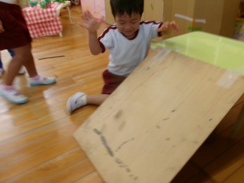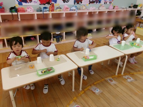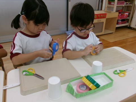 ビニールテープをひっぱったり,はさみで切ったりすることをがんばりましたよ