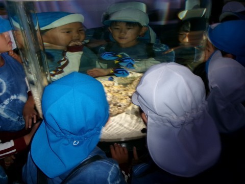 ニフレルでは,いろいろな種類の魚やカエルなどのいろいろな生き物を見ました。初めて見る生き物もおり,目を輝かせながら見ていました✨