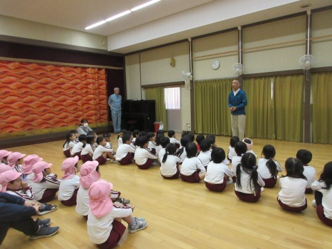 学校安全指導員さんにお越しいただき,避難訓練を行いました。