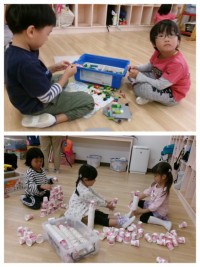 部屋では,マジックでお店屋さんごっこの絵を描きました