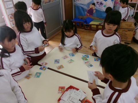 かるたは読み手のお友達の声や取り札の文字と絵に全集中…!真剣勝負でしたよ。