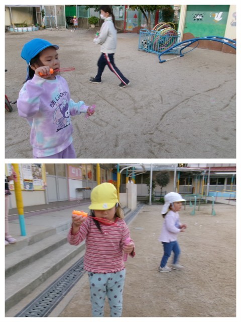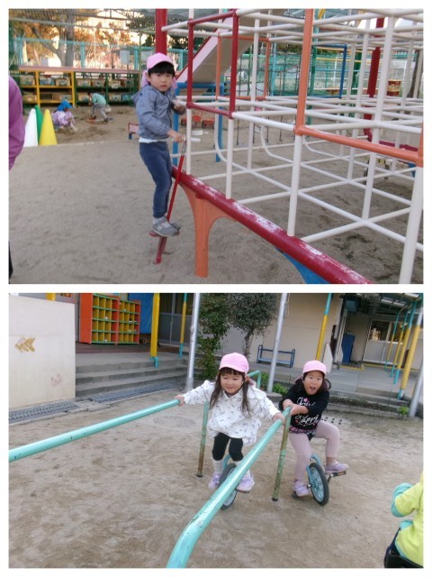 園庭では中あてをしたり,ホッピングや一輪車に挑戦したりしていましたよ✨