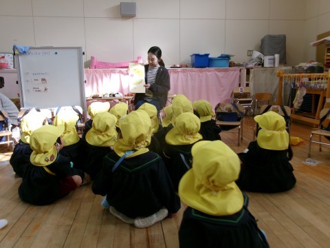 昼から絵本委員のおうちの人に絵本を読んでいただきました