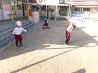 年長さんは園庭で遊びました(*'ω'*) 鬼ごっこやぽっくり,のぼり棒や竹馬など好きな遊びを楽しんでいましたよ(*^-^*)しかし,途中から雨が降ってきたので遊戯室へ移動することに😢
