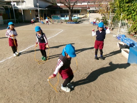 なわとびで遊ぶと体がポカポカしてきたよ。