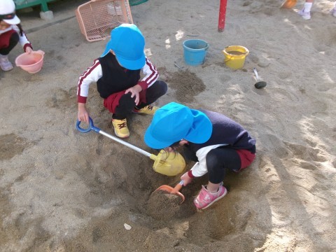 ドッジボールや砂場など,寒さに負けず戸外で好きな遊びを楽しみました。