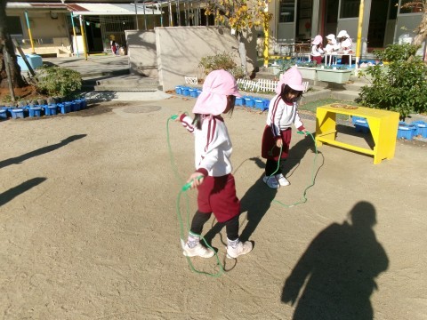 寒さに負けず,ボールで遊んだり,縄跳びをしたりして遊んで身体を動かすことを楽しんでいる子どもたちもいます!