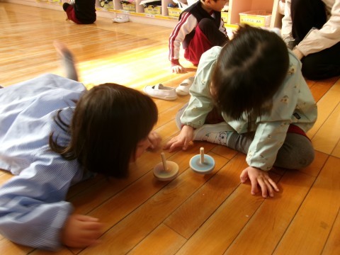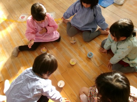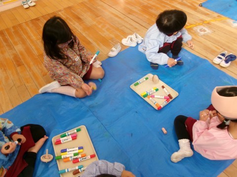 プレゼントのこまを回したり色を塗ったりして楽しみました!