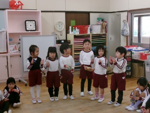 今日は,楽器を鳴らして遊んだり,氷鬼をしたりして遊びました。