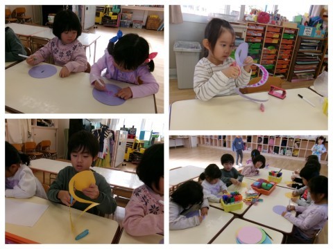 ペンで好きなイラストを描いて園庭で飛ばしましたよ(*'ω'*)