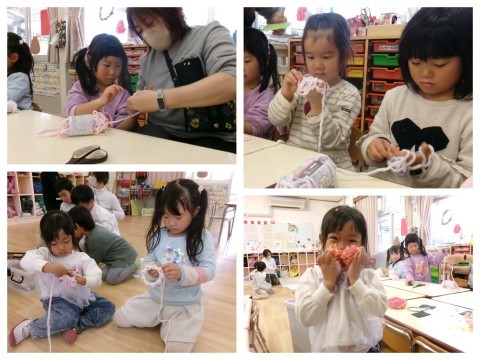 毛糸を使ってマフラーつくりに挑戦!!とっても集中して作っていましたよ(#^.^#)