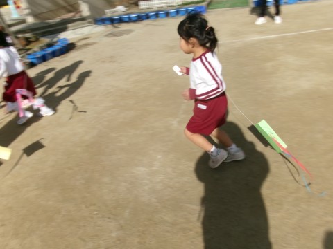 戸外で凧をもって,みんなで思い切り走りましたよ!