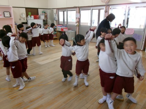 保育室では,猛獣狩りのゲームをみんなで楽しみました。「あと1人足りない!」「誰か来て!」などと自分たちで数を数えて,友だちを呼ぶ姿がありましたよ♪
