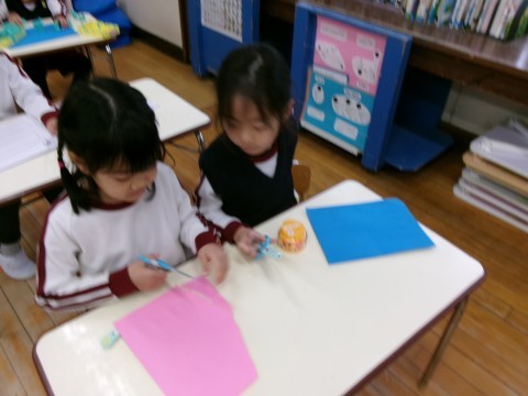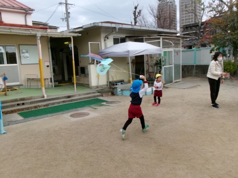 たこは好きな遊びの時間につくりましたよ。お友達のたこを見て「ぼくもやりたい」「私も!」と声が上がりました。