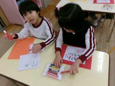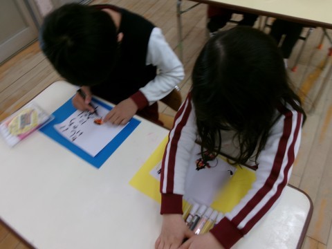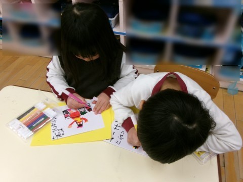 保育室では「絵馬」を描きました。大きくなったら~になりたいという願いを込めて描きました。