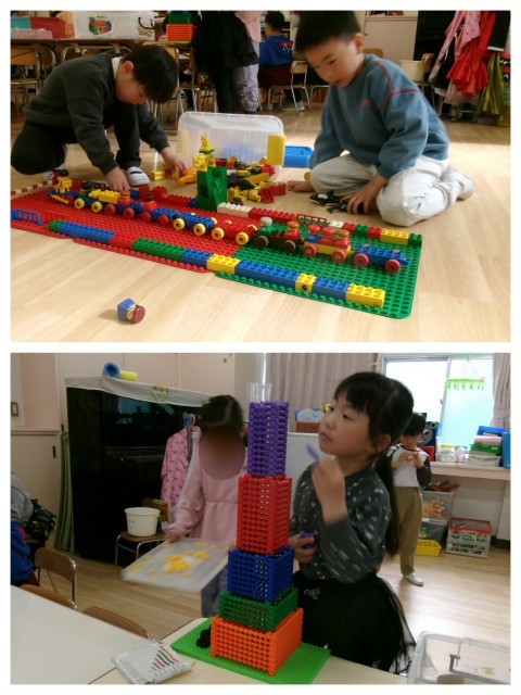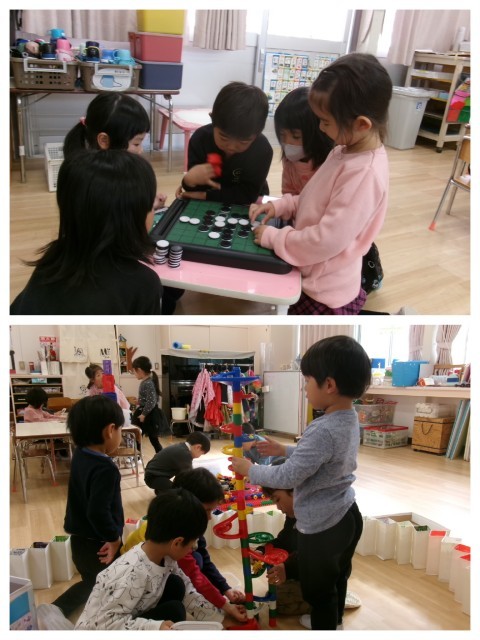 「もう全部準備したから遊ぶね🎵」と順番を決めてオセロ対決や,カルタを楽しむ姿や,協力しながらくるくるコースターや棒ブロックを組み立て遊ぶ姿がたくさん見られましたよ✨