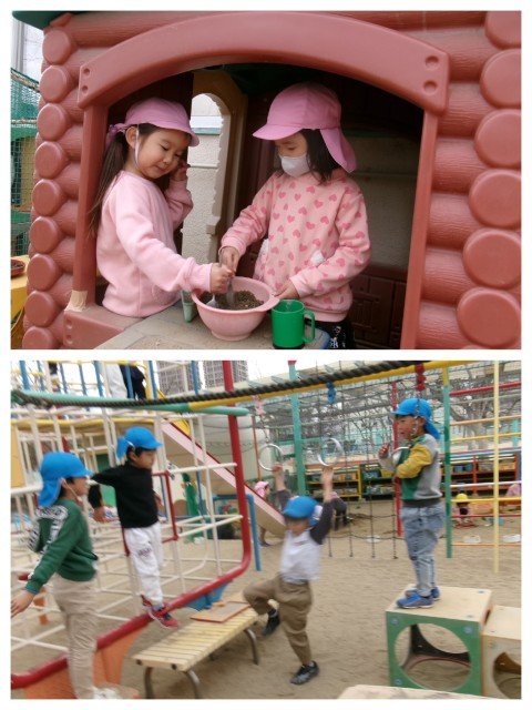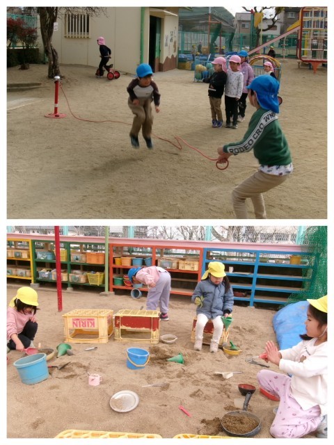 お弁当の後は園庭で遊びました🎵ままごとに 鬼ごっこ👹 電車ごっごに大繩などなど(#^.^#)!いっぱい体を動かして遊びましたよ💛