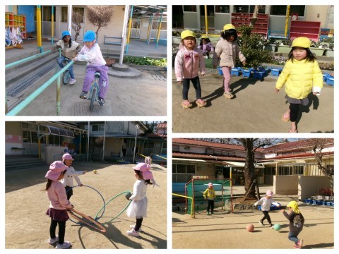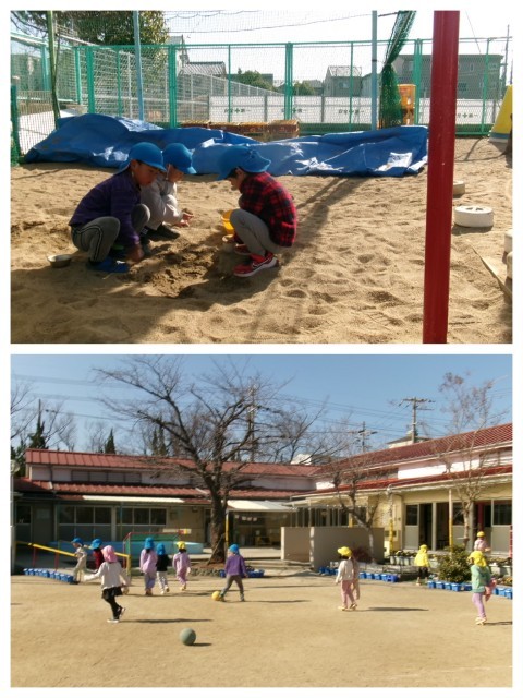 園庭では,異年齢混ざっての鬼ごっこ👹や一輪車の練習に,泥だんごづくりなどなど(*'ω'*)🎵