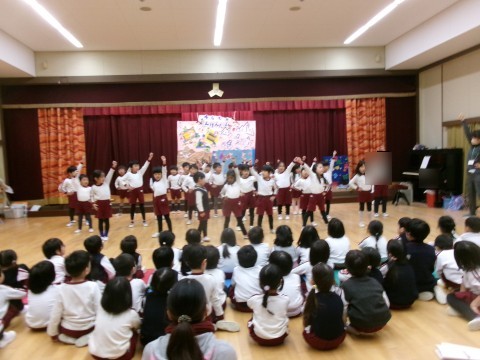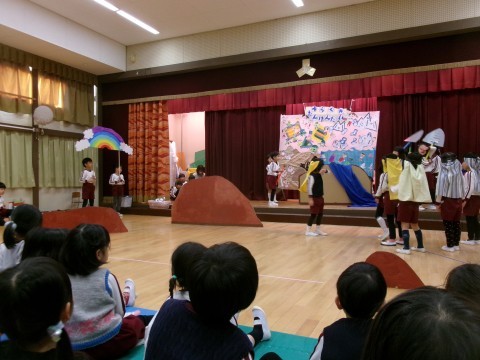 他クラスの劇遊びを見たことで,自分たちもがんばってるところを見てもらおう!!と,はりきっていましたよ。