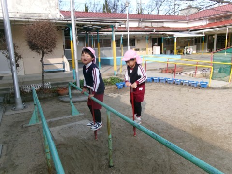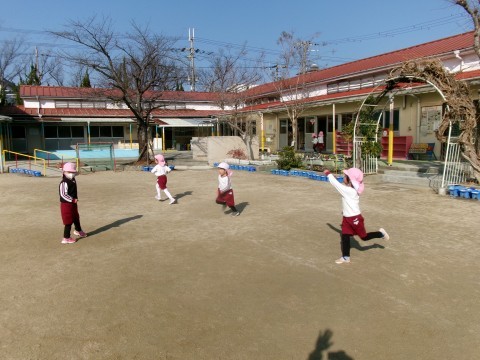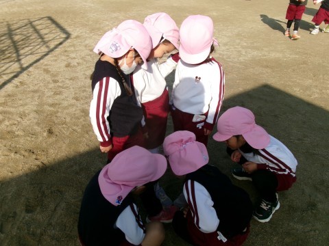園庭での自発活動では,ホッピングやフラフープ,氷鬼などいろいろな遊びを楽しんでいます。フープをしている子どもたちは,回すだけでなく飛ぶことにもチャレンジしていました😊寒さに負けず,たくさん体を動かして遊んでいますよ😊