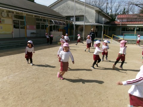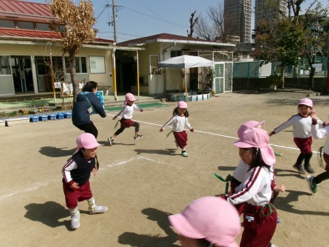 保育室では,誰のしっぽでしょうクイズをした後に,しっぽ取りをして遊びました。最初は,みんなでしっぽを取られないように逃げることを楽しんだ後,追いかけること人(ネコ)と逃げる人(ネズミ)に分かれて遊びましたよ!「誰にもとられなかったよ!」と逃げる名人の子どもたちもいましたよ。すごい✨また,遊ぼうね!