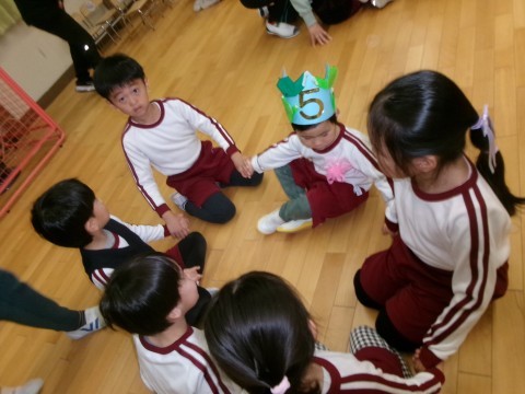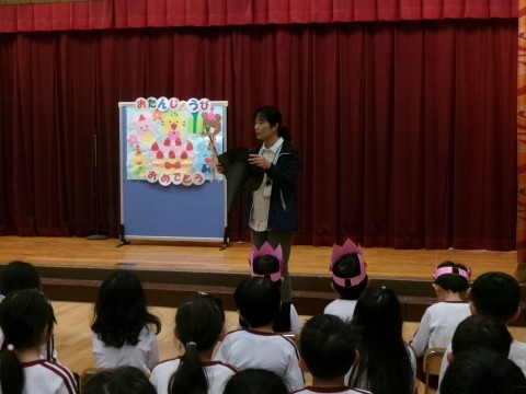 誕生会の司会はうさぎ組さんと一緒にしましたよ。年長児らしくリードする姿が見られました。