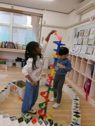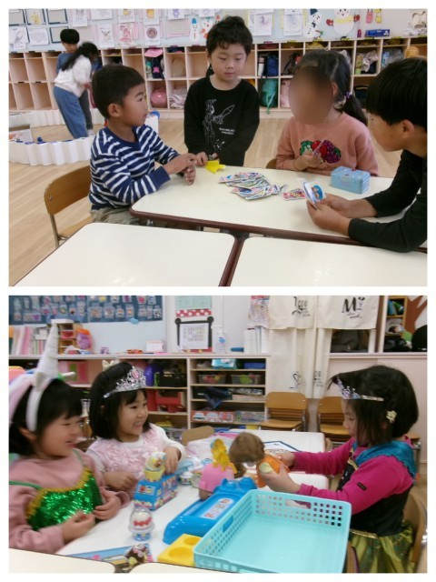 くるくるコースターにUNO,ドレスアップしてのお姫様ごっこ,紙コップタワーなどお友達と一緒に楽しむ姿がたくさん見られました(*'ω'*)