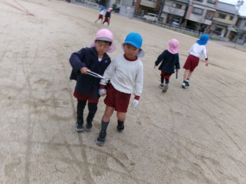 午後からは,三国ヶ丘公園の清掃をうさぎ組さんと一緒に行いました。