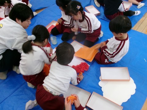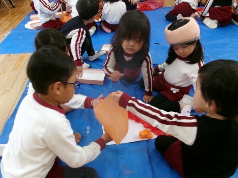 こままわしでは,まめっこの子ども達と回したり,ままごとをしたりして遊びましたよ