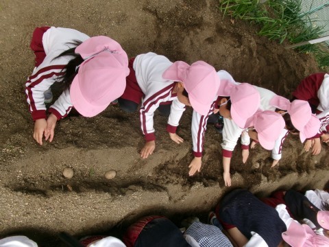 今日畑に植えたジャガイモは,そら組さんになってから収穫します。そら組さんになることへの期待を膨らませながら植えていましたよ😊