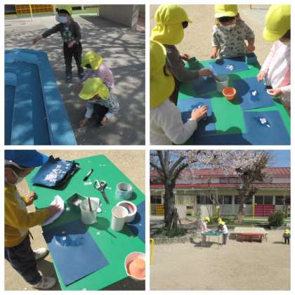 素敵な桜の飾りができ,お迎えの時に嬉しそうに
