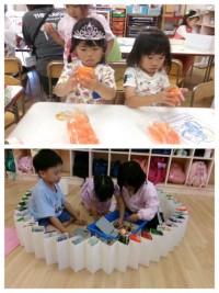 警察ごっこ、消防ごっこ、ウーバーイーツのごはんづくりなどを楽しみました。
