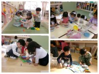こまが入っているのを見つけて、まわしてみたり、「色を塗りたい!」と伝えたりしていました。