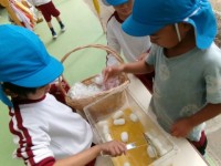 子ども達は「プレゼントや!」「すごい!」と喜んでいて、みんなで袋をあけました。