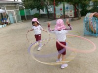 こままわしをした後、園庭のサンタクロースのそりのあとに気が付いた子どもが「園庭に、そりのあとがあるよ」と伝えてくれ、みんなで見に行きました。そりのあとを走りまわる子どもや「ここに足跡があるよ!」とトナカイの足跡を見つけて教えあうる子どももおり、クリスマスを楽しみにしていました。
