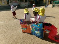 今日は、かえるの様子をみんなで見たり、外で、三輪車や、スケーター、鬼ごっこなどをして遊びました。ごっこ遊びもいろいろな友達と遊び、楽しんでいます。