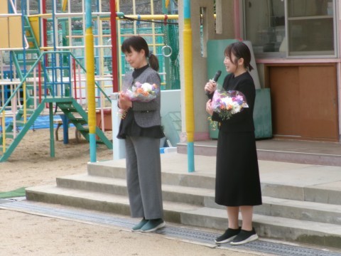 これまで三国丘幼稚園でご尽力いただいたお二人が去られることは大変さみしいことですが,新天地でもきっとご活躍のことと思います。
